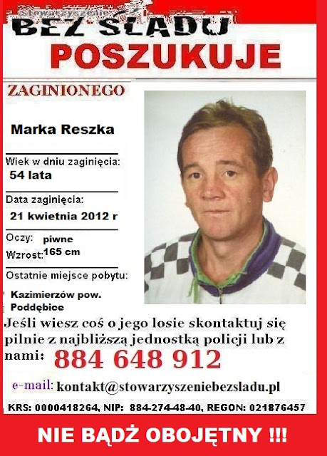 Na wszelkie informacje czekamy pod mailem: kontakt@stowarzyszeniebezsladu.pl lub tel. 884 648 912 lub też do detektywa Inter Securus: 42 630-38-82 lub 601 242 362