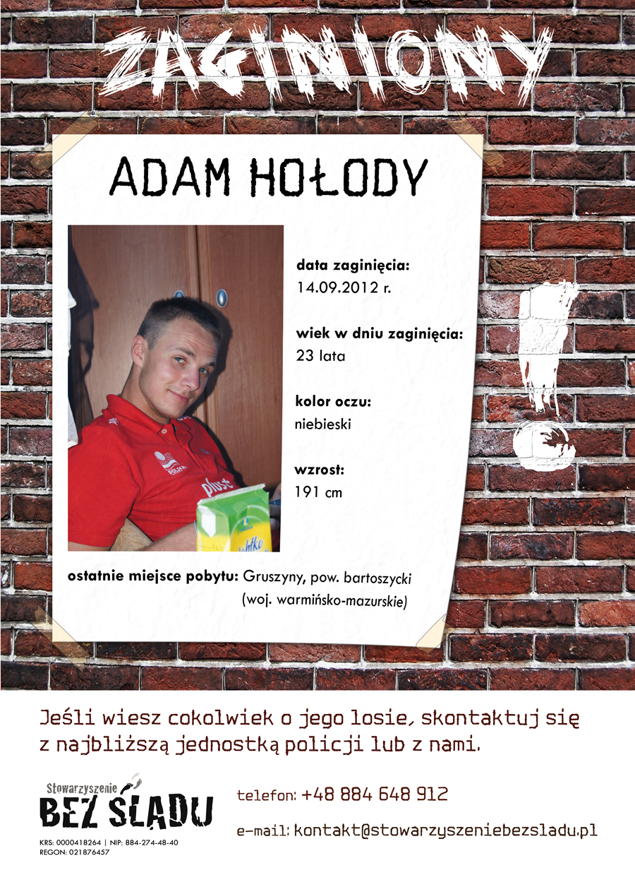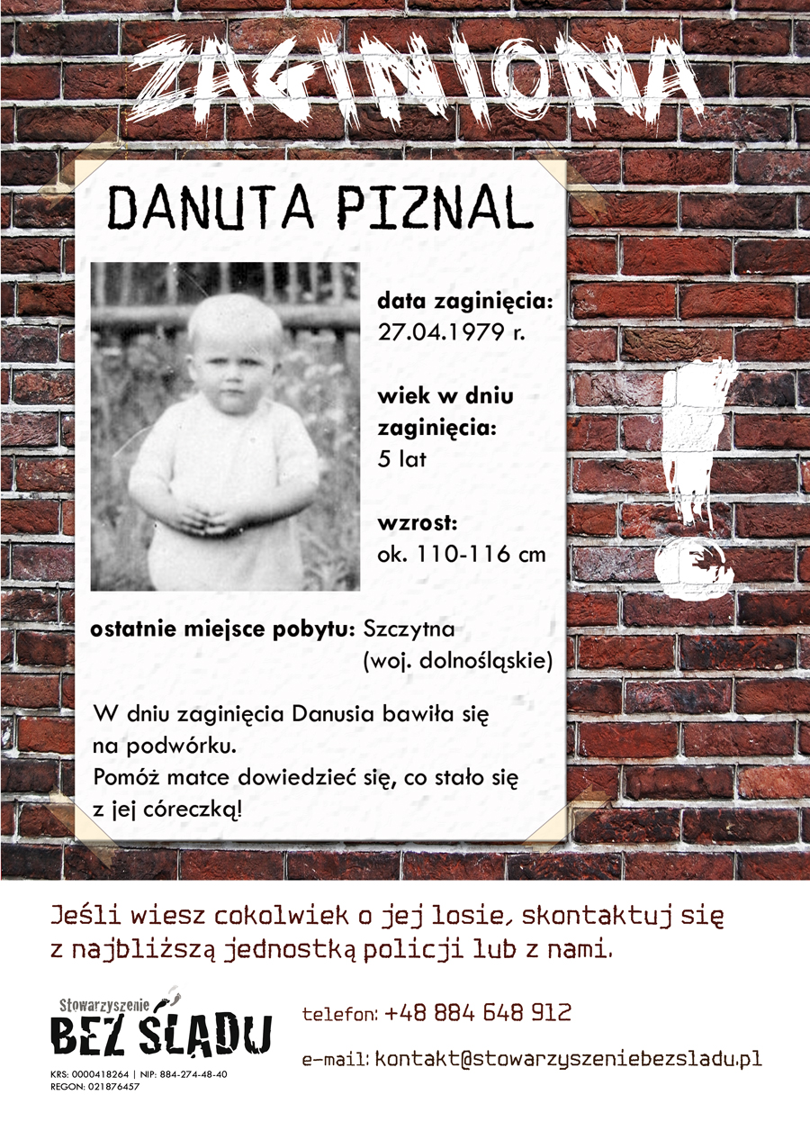 Stowarzyszenie Bez Śladu - jest efektem naszych prywatnych przeżyć związanych z zaginięciem bliskiej osoby.Dzisiaj jesteśmy jedynym stowarzyszeniem osób które organizują się wirtualnie i działają na całym świecie.Służymy rodzinom osób zaginionych nie tylko pomocą w nagłośnieniu i doprowadzeniu do skutecznych poszukiwań ale także naszym doświadczeniem osobistym. KRS: 0000418264. Kontakt: 884 648 912 kontakt@stowarzyszeniebezsladu.pl